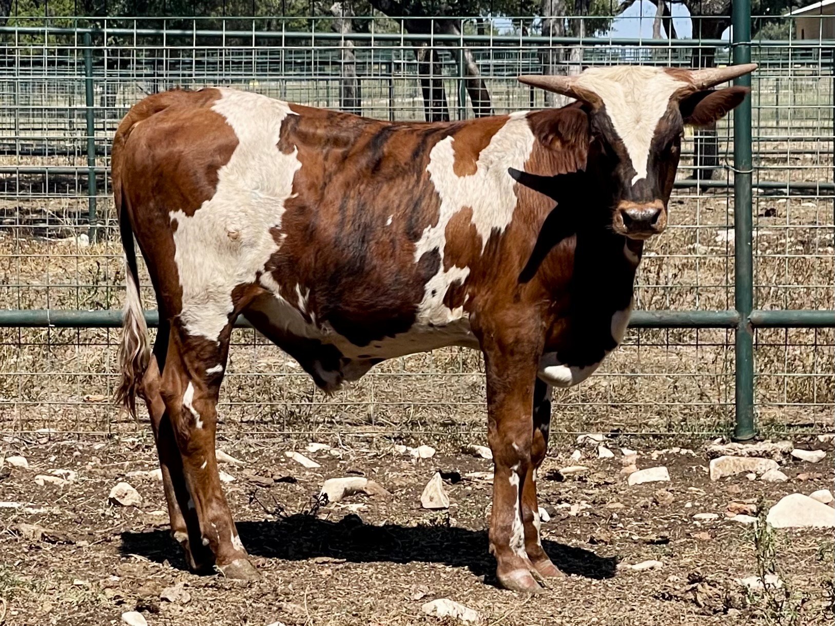 Red head with white shield, red and white paint body. Brindle nose